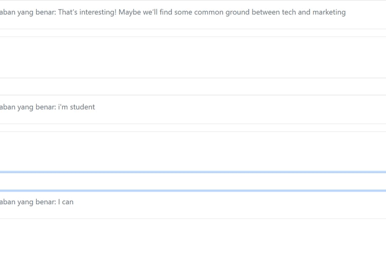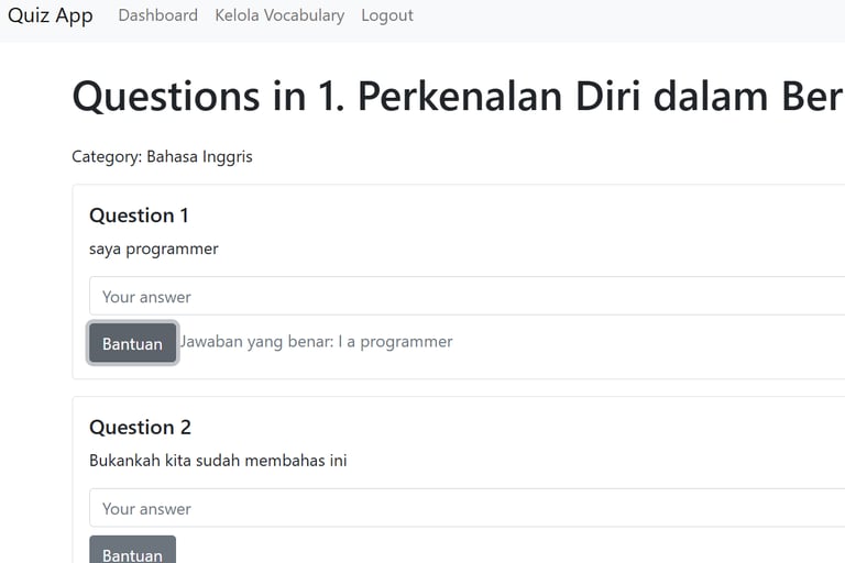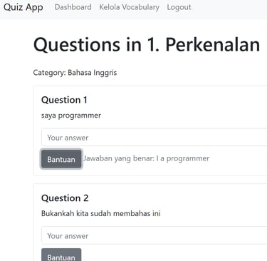 Aplikasi web kursus bahasa Inggris yang canggih dirancang untuk meningkatkan kemampuan berbahasa, dilengkapi dengan fitur diskusi topik otomatis dan koreksi jawaban. Dikembangkan menggunakan PHP, Bootstrap, dan JavaScript, platform ini menawarkan pengalaman pengguna yang mulus dan interaktif dengan antarmuka modern serta responsif untuk mendukung pembelajaran bahasa yang efektif.