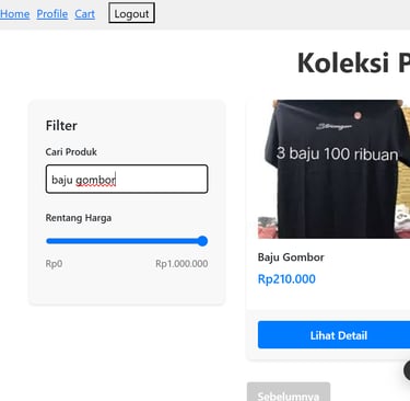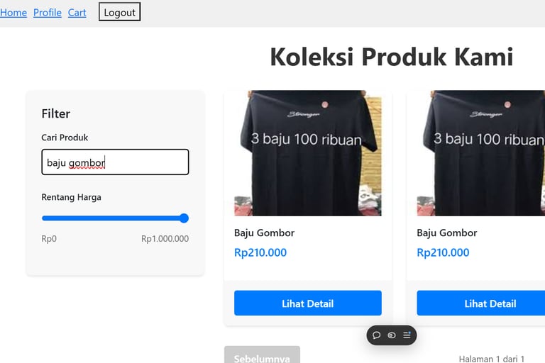 Sebuah platform toko online modern untuk penjualan pakaian, dilengkapi dengan fitur pencarian produk yang canggih, navigasi dengan paginasi, keranjang belanja (cart) yang interaktif, halaman detail produk yang informatif, sistem login pengguna yang aman, serta pembuatan faktur (invoice) secara otomatis. Platform ini dibangun menggunakan teknologi React, JavaScript, dan CSS, memberikan pengalaman pengguna yang responsif dan estetika yang menarik.