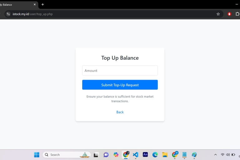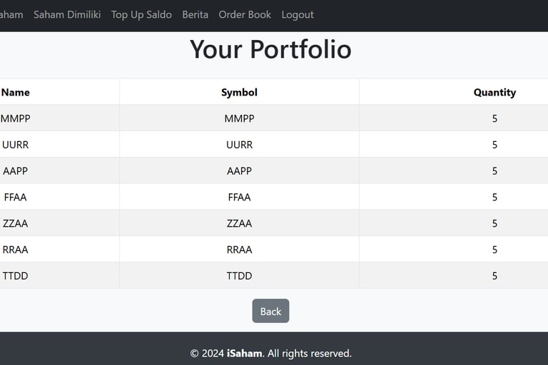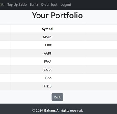 Website ini dirancang sebagai platform latihan jual beli saham yang ditujukan untuk program studi Manajemen dan Akuntansi. Website ini menyediakan dua jenis akses utama, yaitu untuk admin dan user, serta dilengkapi dengan berbagai fitur unggulan yang dirancang untuk memberikan pengalaman belajar yang interaktif dan praktis. Website ini dikembangkan menggunakan teknologi modern seperti PHP untuk backend, JavaScript untuk interaktivitas, Bootstrap untuk desain responsif, serta CSS untuk tampilan yang menarik. Platform ini tidak hanya dirancang untuk mendukung pembelajaran teori, tetapi juga memberikan simulasi praktis yang mendekati kondisi nyata di dunia saham.